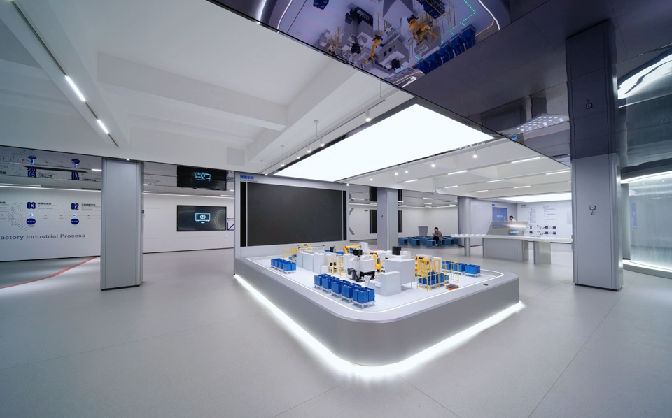 这是一家智能生产线和智能设备集成服务供应商,数字化智能工厂体验中心展示了企业为客户打造智能生产线的