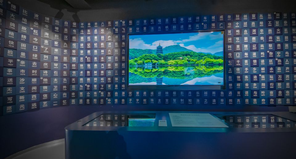 活字印刷式的墙面汉字译码表与操作系统,共同构成了“解密摩尔斯”展项。
